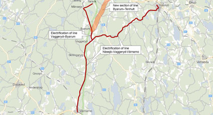 - electrification of the track between Nässjö-Vaggeryd-Värnamo