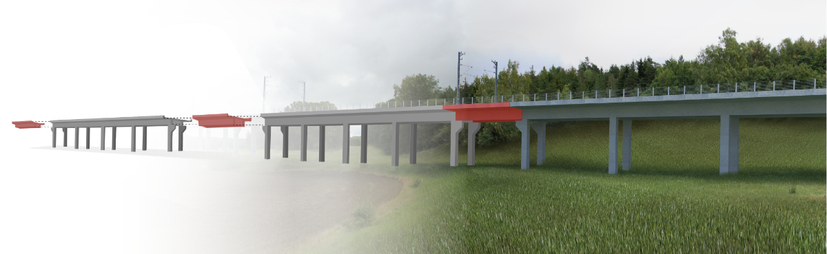 - Byt ut konventionella broar eller grundförstärkta bankar (högre än 3 meter) mot landbroar. Det går att göra i ett senare skede – i järnvägsplanen.