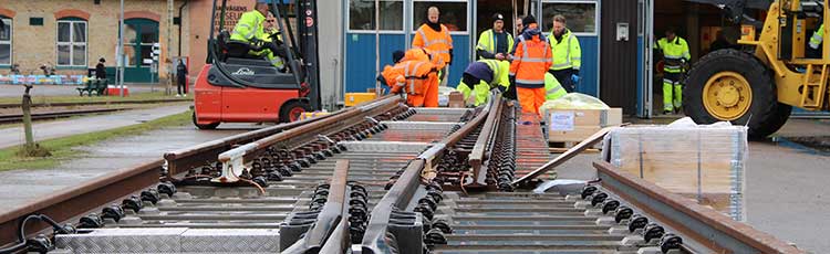 Växel med växeldrivet MET-SE läggs på plats i järnvägsparken i Ängelholm.