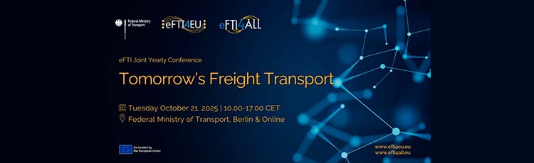Den 21 oktober 2025, 10.00 – 17.00 kommer @eFTI4EU och @eFTI4ALL, i samarbete med det tyska BMV-förbundsministeriet för transport, att vara värd för konferensen "Morgondagens godstransporter" i Berlin.